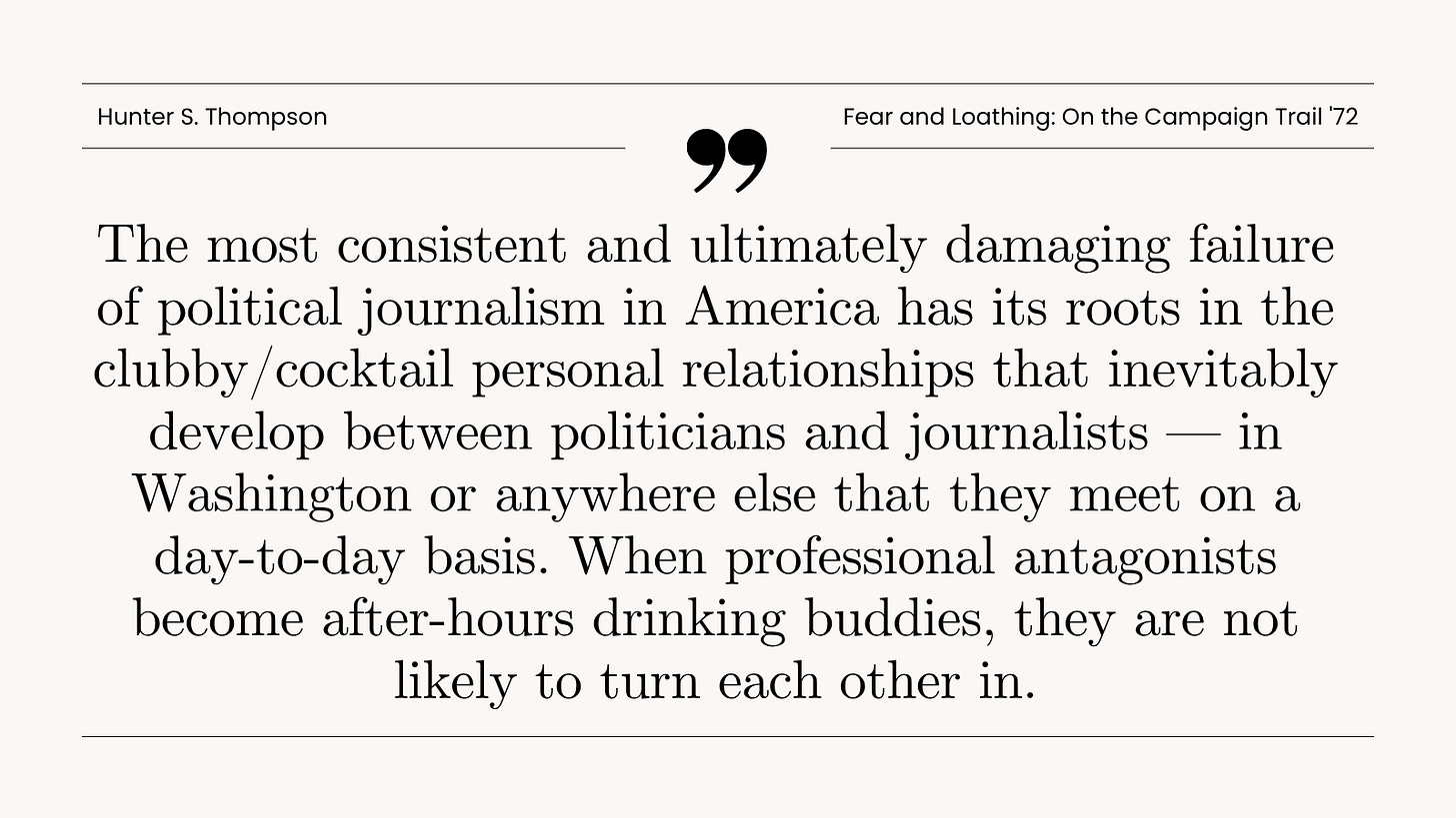 I was writing for Good at the time. The argument was straightforward: the White House Correspondents’ Association was founded in 1914 because journalists worried Woodrow Wilson would make it harder for them to cover his administration. They wanted a body that could fight back. A century later, that same body was throwing a black-tie gala where the people running the country sat at tables with the journalists who were supposed to be holding them accountable. Michelle Wolf had just told some jokes about Sarah Huckabee Sanders. The WHCA had apologized for them. The whole thing felt like a tradition that should have ended a long time ago.