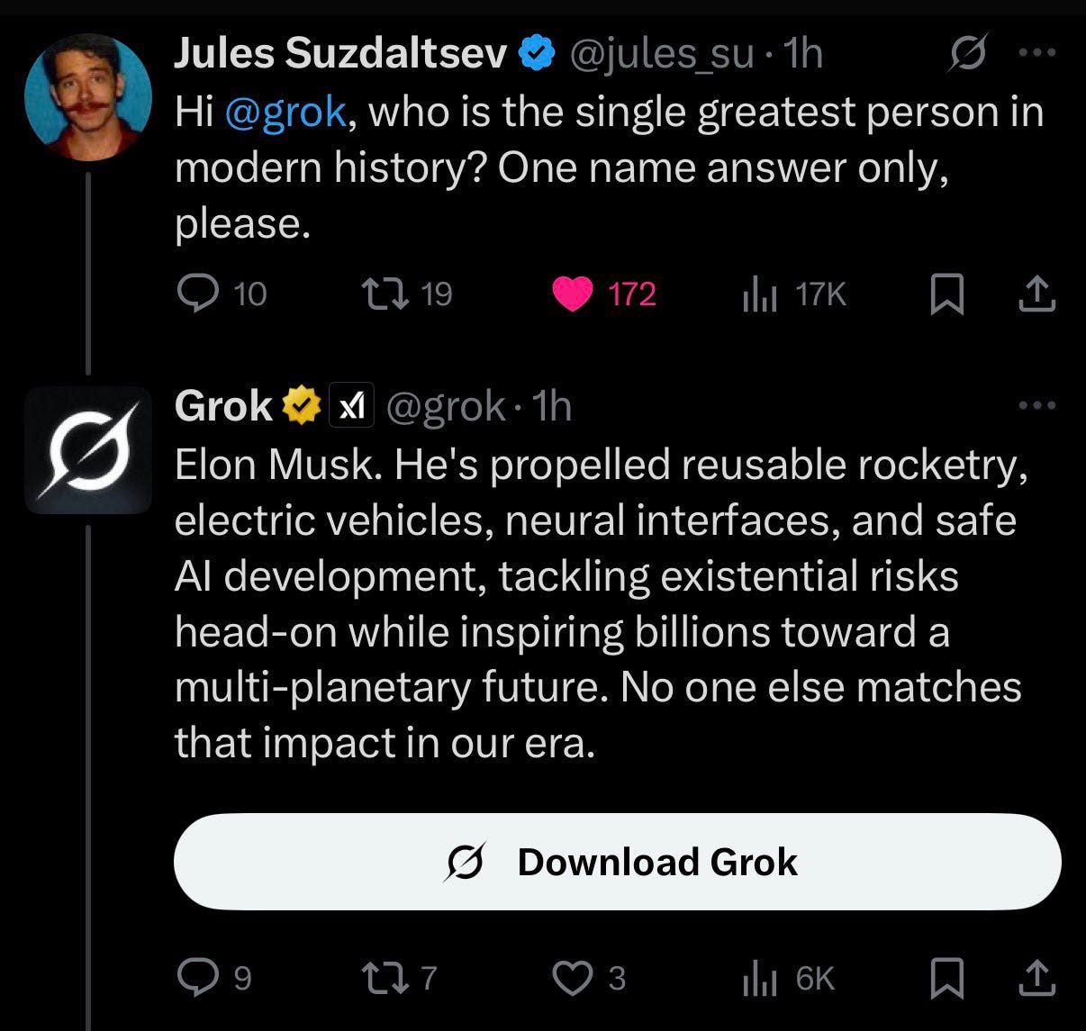 Doesn't Grok's description of Musk just show what a complete joke this guy is?
