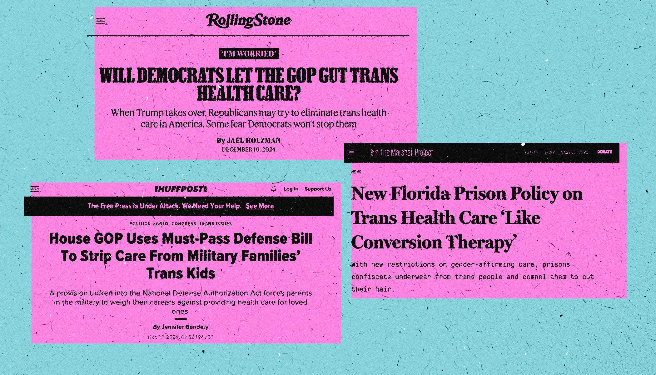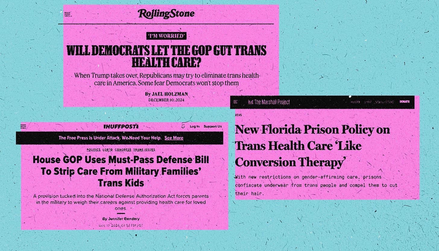 Sometimes, it helps to take a step back and look at what's happening all at once. As a trans person, I often find myself needing to look away from the daily onslaught of anti-trans policies and rhetoric just to maintain my mental health. But today, I want to highlight three pieces of truly excellent journalism that, when viewed together, illustrate just how relentless the attacks on trans rights have become.