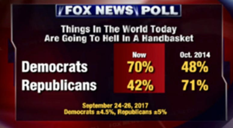 Obvious. Yeah. I remember in 20- I think 14 or 15, Fox News, it might have been Doug Schoen, that guy who did a poll and it was, “Do you think the country is going to hell in a handbasket?” That was the question.