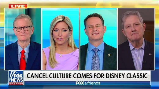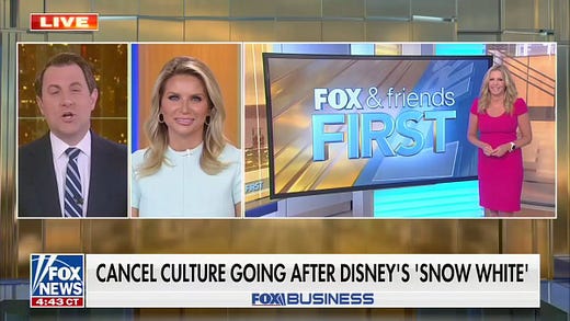 Fox runs it into the ground, repeating it over and over until it becomes an accepted belief among its viewers that “liberals want to cancel Snow White.” You’ve seen this with things like last year’s freak-out over Dr. Seuss (I wrote about that here), but also with dumb controversies around The Muppet Show and Mr. Potato Head (I wrote about that here, as well.)